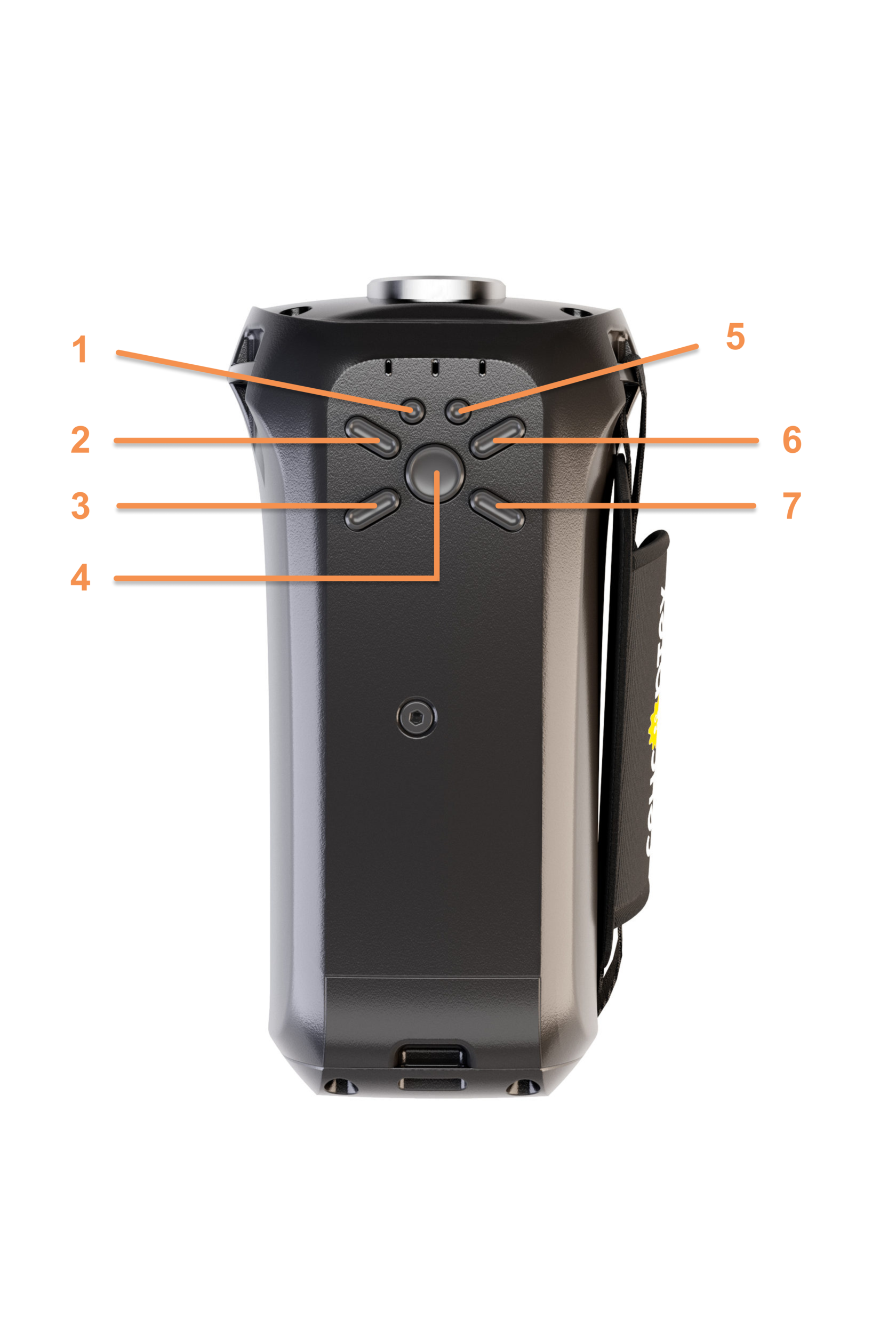 а) Большая круглая кнопка по нажатию и удержанию активирует быстрое распознавание объектов и лиц людей, которое будет работать до тех пор пока, вы удерживаете кнопку нажатой. При однократном нажатии на эту кнопку устройство выполнит обычный поиск объектов и лиц людей с определением расстояния до них.